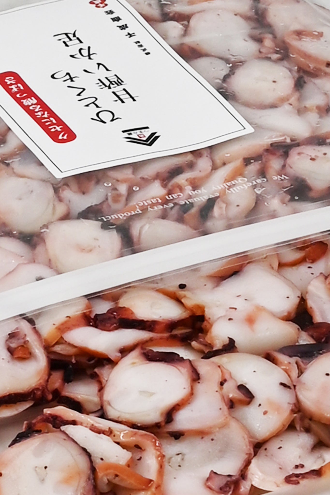 いかげそを薄くスライスし酸っぱさをしっかり楽しめるよう、味付けにこだわった甘酢いかです。しっとり柔らかで、歯ごたえのある食感に、魚介の旨みとさっぱりとした甘酢が、おやつやお酒のつまみにピッタリの逸品です。