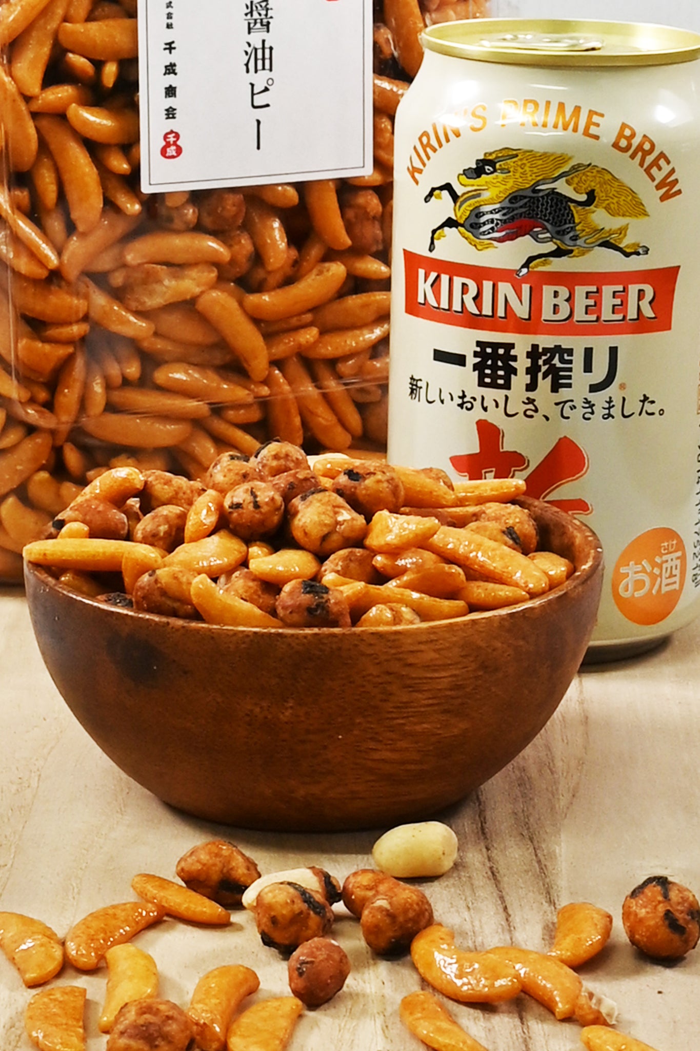 柿の種(かきのたね)との相性は抜群で、お酒のつまみにピッタリな柿ピーです。