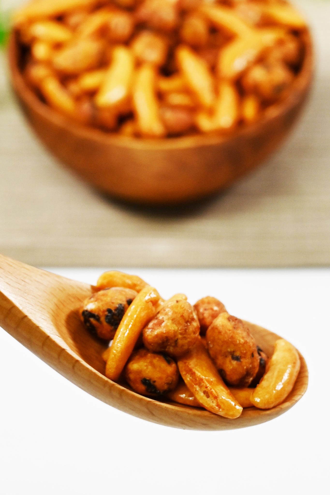 カリカリとした食感に加え、柿種と醤油海苔ピーという組み合わせならではの“味変”ができ、飽きずに食べ進められます。